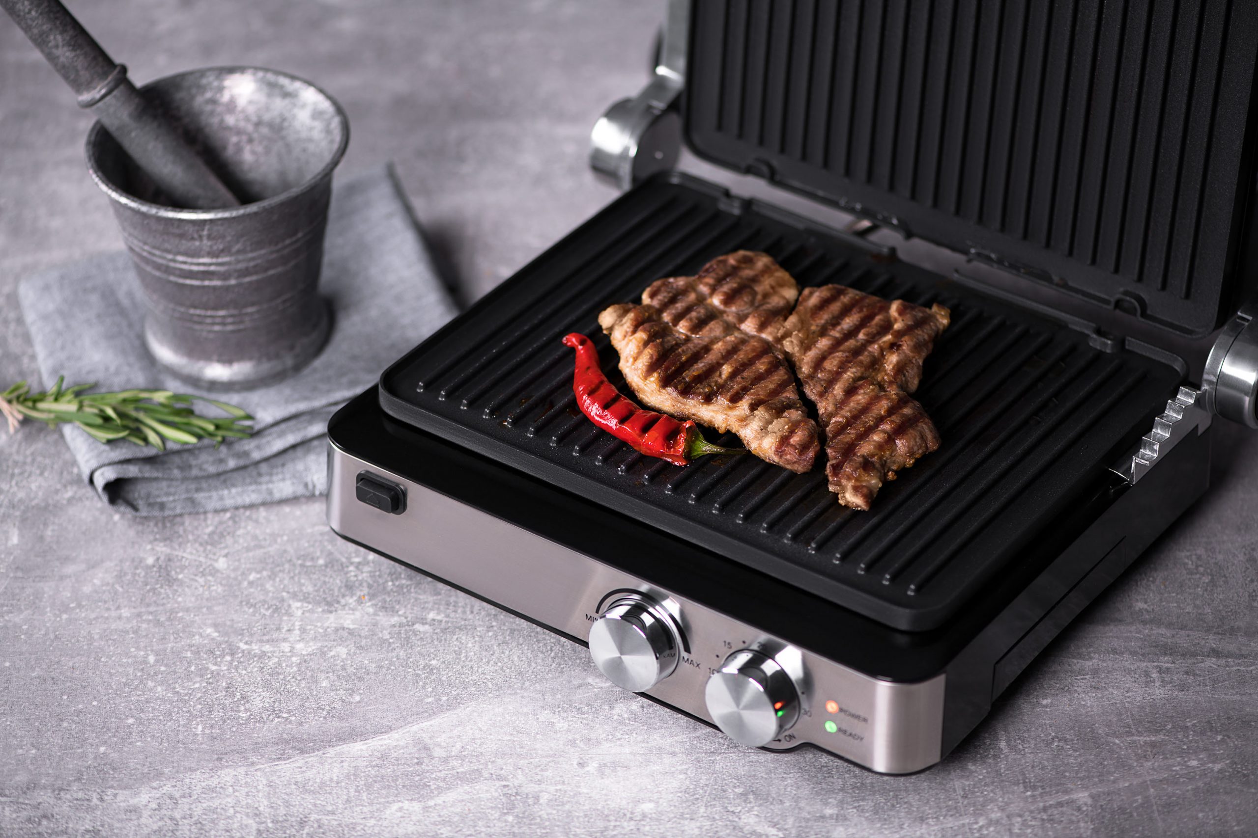 • ჩართვის და გაცხელების ინდიკატორი